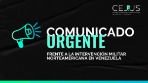 Desde CEJUS expresamos una profunda preocupación por la intervención en Venezuela por parte de los Estados Unidos y la privación de libertad del Presidente Nicolás Maduro. Esta acción pone en peligro la estabilidad regional y desafía principios fundamentales del derecho internacional, como la soberanía de los Estado y la autodeterminación política.